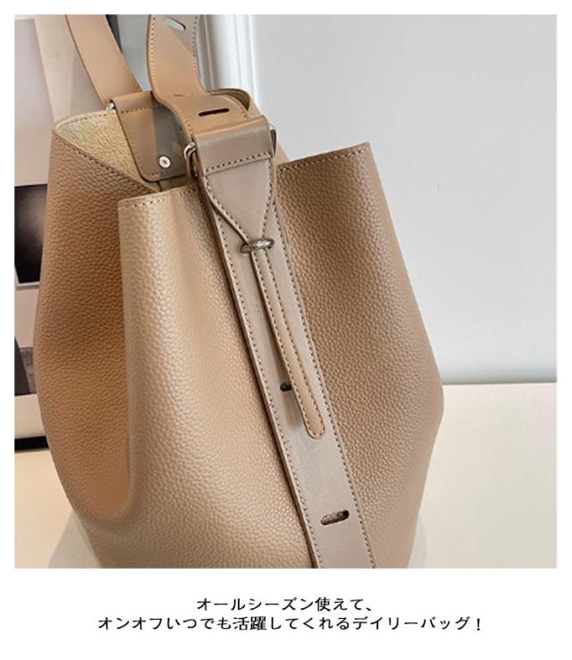 | お出掛けに便利なバケツ型PUレザーのバッグ。 やわらかく丈夫なフェイクレザー生地で上品に仕上げた。 普段使いにちょうどいい絶妙なサイズ感で開口部が大きく荷物の出し入れもスムーズに! マグネットボタン仕様でワンタッチ開閉が便利! マチ広+小物の整理に便利なインナーバッグ付きで見た目以上にたっぷり収納できます。 オールシーズン使えて、オンオフいつでも活躍してくれるデイリーバッグ ! | |