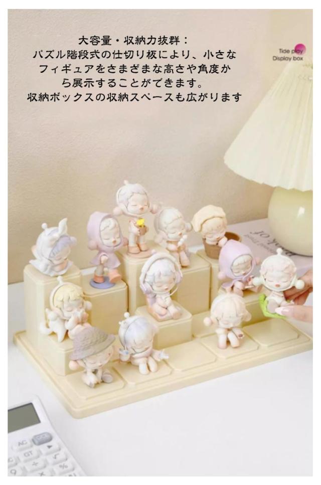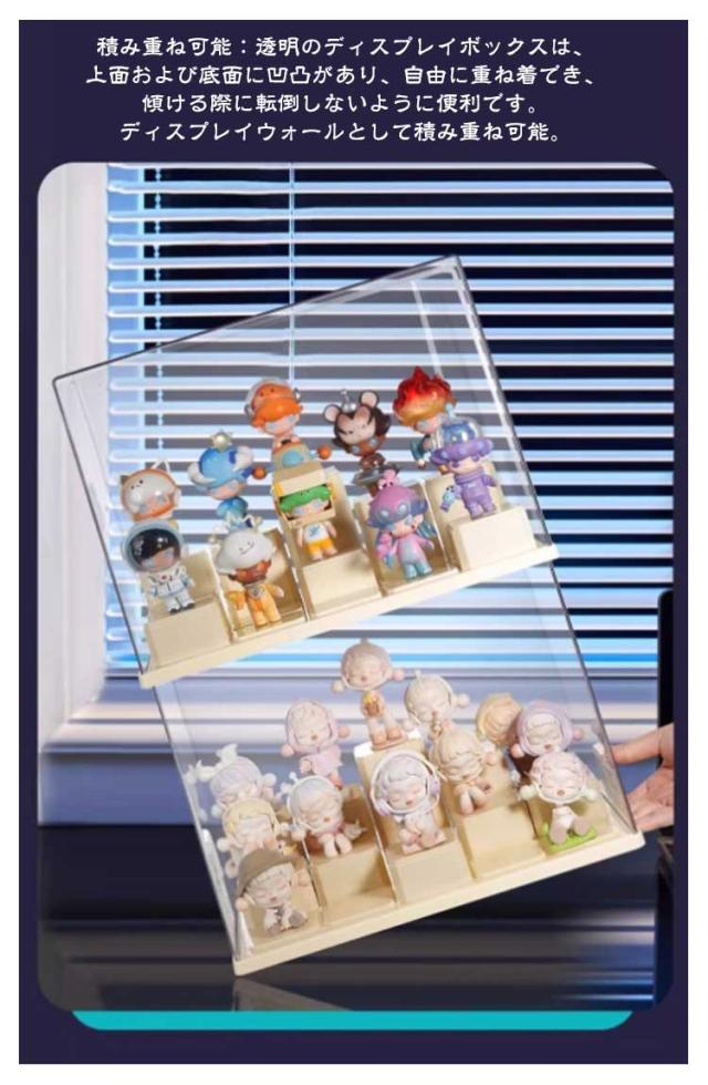 | 卓上タイプのコレクションケース。【2個セット】 透明素材採用:コレクションケースの各側面は透明素材を採用なので、人形ディスプレイがすぐにはっきり見えます。 大容量・収納力抜群:パズル階段式の仕切り板により、小さなフィギュアをさまざまな高さや角度から展示することができます。収納ボックスの収納スペースも広がります マグネット式デザイン:扉は開閉しやすいマグネット式なので、物の出し入りが便利です。装飾品を簡単に交換できます。 積み重ね可能:透明のディスプレイボックスは、上面および底面に凹凸があり、自由に重ね着でき、傾ける際に転倒しないように便利です。ディスプレイウォールとして積み重ね可能。 様々なシーンで大活躍:フィギュアやコレクションの日常的な保存だけでなく、さまざまな小物用の防塵ケースとしても便利です。家の装飾としても使えます。 透明のディスプレイボックスは、コレクション好きの友人へのプレゼントに最適です。 | |
