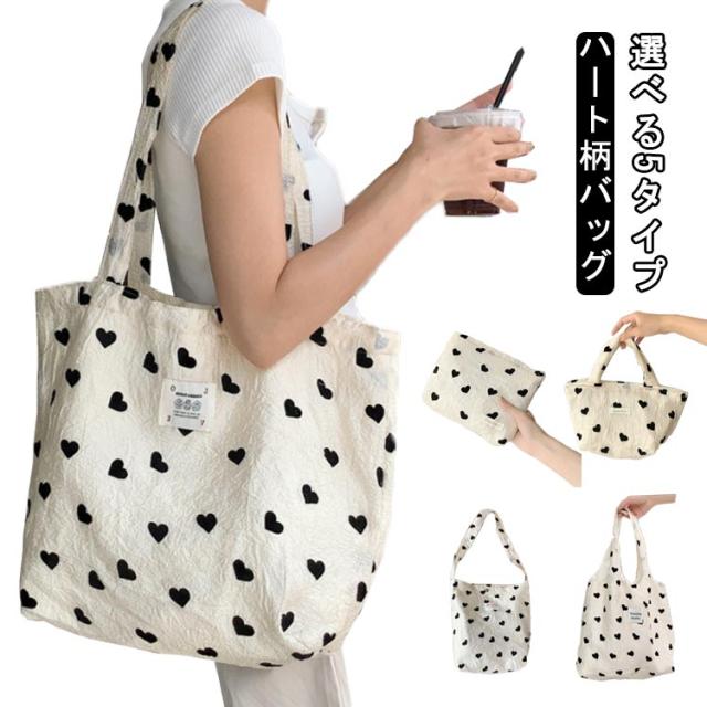 手提げバッグ サブバッグ トートバッグ ハート柄 可愛い 鞄 ミニバッグ ハート柄バッグ ハート柄バッグ キャンバス 軽量 折りたたみバッグ シンプル おしゃれ 韓国 化粧ポーチ 肩掛け トート ショルダーバッグ ガーリー カジュアル 旅行