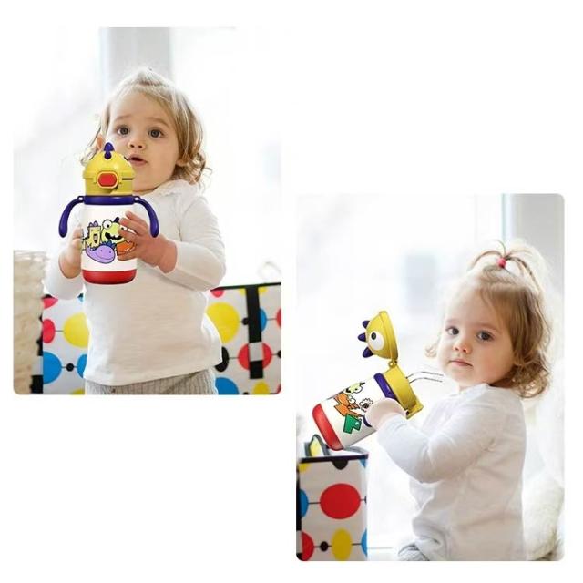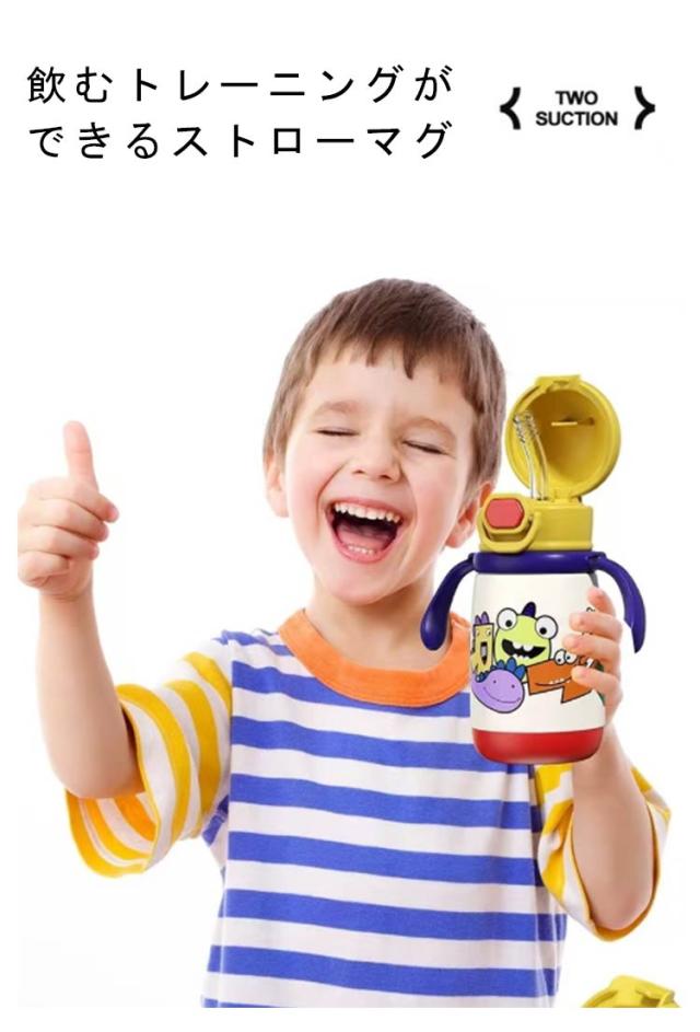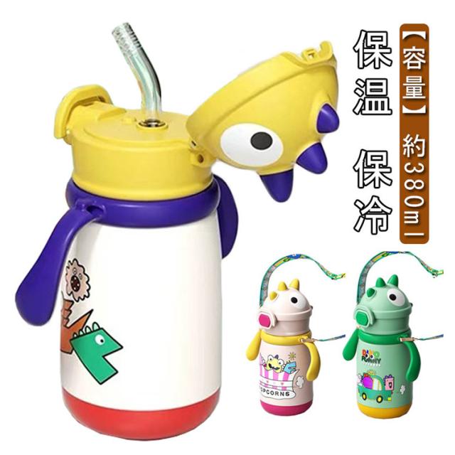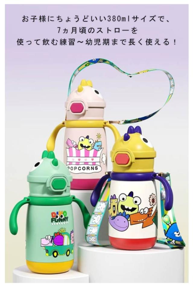 練習 380ml 水筒 保冷 女の子 ストローマグ 赤ちゃん 男の子 ベビー用 ショルダー ハンドル付き ワンタッチ ストローマグ ベビーマグ 保温 トレーニング ステンレス ボトル 両手 出産祝い 子ども ギフト 1歳