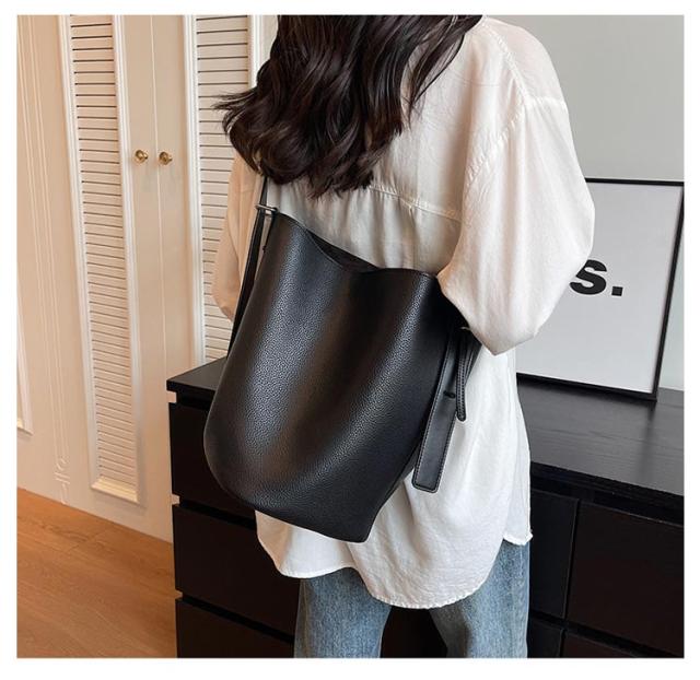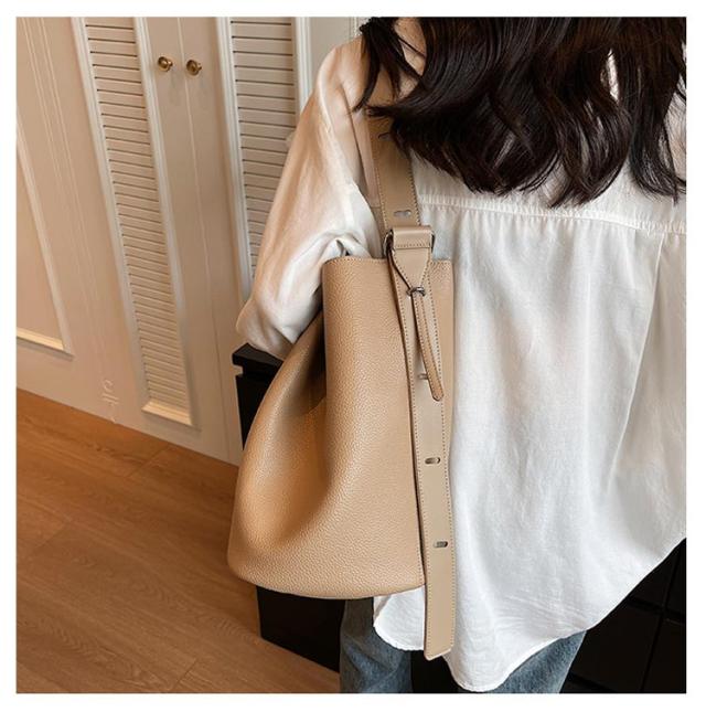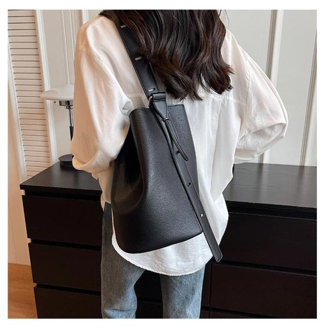 | お出掛けに便利なバケツ型PUレザーのバッグ。 やわらかく丈夫なフェイクレザー生地で上品に仕上げた。 普段使いにちょうどいい絶妙なサイズ感で開口部が大きく荷物の出し入れもスムーズに! マグネットボタン仕様でワンタッチ開閉が便利! マチ広+小物の整理に便利なインナーバッグ付きで見た目以上にたっぷり収納できます。 オールシーズン使えて、オンオフいつでも活躍してくれるデイリーバッグ ! | |