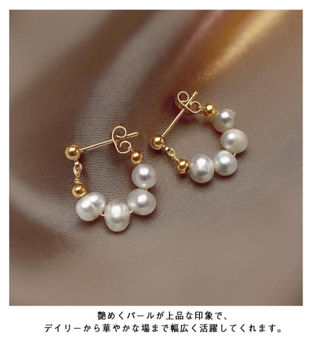 | 【ピアス】【両耳用】 淡水パールが可愛い♪♪ 一つ一つ個性のある淡水パールが連なり上品な雰囲気に演出してくれます。 艶めくパールが上品な印象で、デイリーから華やかな場まで幅広く活躍してくれます。 低アレルギーのニッケルフリー素材を使用しているので、長時間の着用も安心です。 キレイめコーデのアクセントとしてプラスしたり、パーティーシーンにも◎ | |