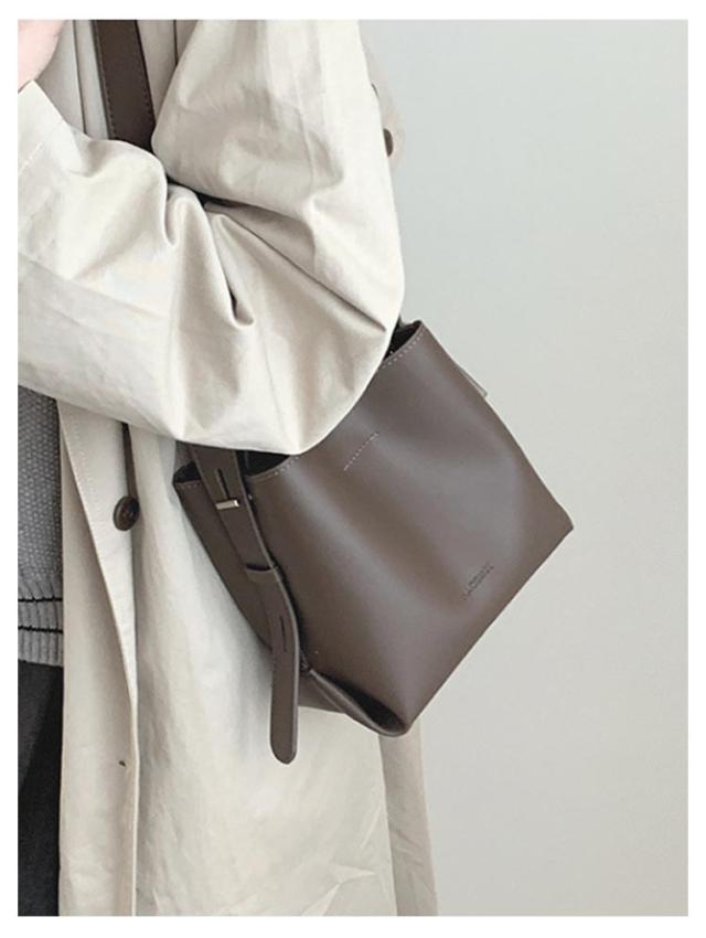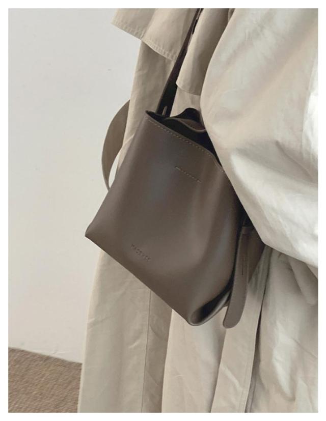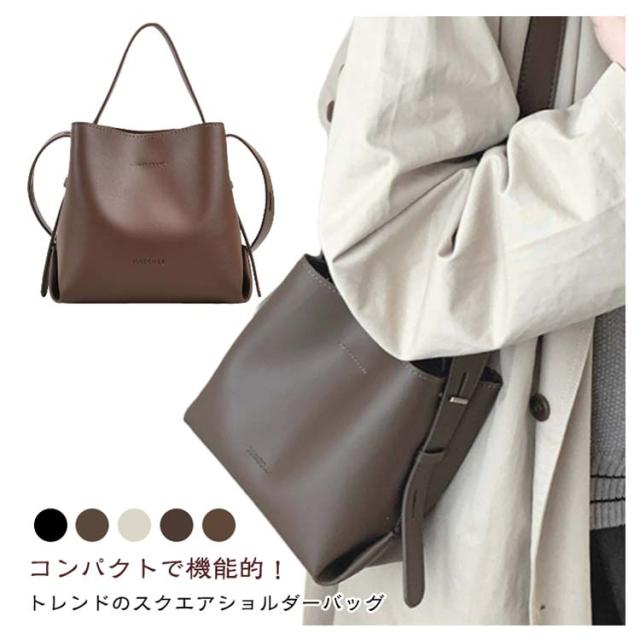 | コンパクトで機能的!トレンドのスクエアショルダーバッグ。 トレンド感のある四角いフォルムのバッグが、オトナコーデにアクセントをプラス。 普段使いしやすいサイズ感にあおり型の開口部が使いやすい。 マチが広くバケツ型なので、小さいサイズながら、長財布もしっかり収納可能! ほどよいハリとやわらかさがあり、本革のようなしっとりとした手触りです。 無駄な飾りをつけずに、オトナの女性でも持てるシンプルで上品なスタイルを楽しめます。 | |
