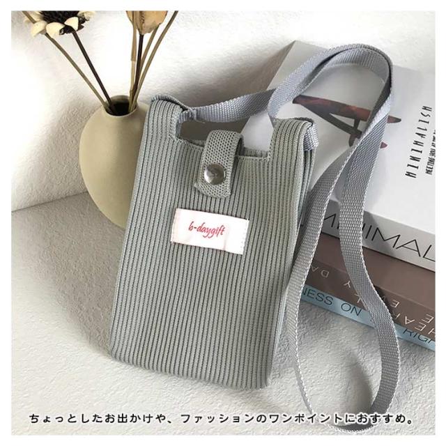 | 優しい手触り、しっかりとしたニット生地で出来たミニショルダーバッグ。 無駄なロゴや文字を排除し、どんな服装にもマッチするデザインに仕上げました。 定期入れやIDカードホルダー、パスケースとしても使用可能です。 スマートフォンポーチの上部の蓋(フタ)はマグネットでしっかり留まります。 斜めがけタイプですので、お子様がいるママさんも両手が自由に使え、安心できます。 ちょっとしたお出かけや、ファッションのワンポイントにおすすめ。 | |