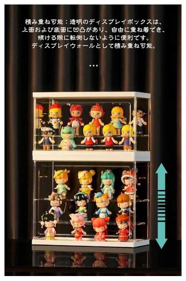 | 卓上タイプのコレクションケース。【2個セット】【積み重ね可能】【仕切り板取り外し可能】 透明素材採用:コレクションケースの各側面は透明素材を採用なので、人形ディスプレイがすぐにはっきり見えます。 大容量・収納力抜群:パズル階段式の仕切り板により、小さなフィギュアをさまざまな高さや角度から展示することができます。収納ボックスの収納スペースも広がります マグネット式デザイン:扉は開閉しやすいマグネット式なので、物の出し入りが便利です。装飾品を簡単に交換できます。 積み重ね可能:透明のディスプレイボックスは、上面および底面に凹凸があり、自由に重ね着でき、傾ける際に転倒しないように便利です。ディスプレイウォールとして積み重ね可能。 取り外し可能な仕切り板:三段ステージの仕切り板は必要に応じて取り外すことができ、大きなフィギュアも入れられ、大きさに合わせて飾ることができる。 様々なシーンで大活躍:フィギュアやコレクションの日常的な保存だけでなく、さまざまな小物用の防塵ケースとしても便利です。家の装飾としても使えます。 透明のディスプレイボックスは、コレクション好きの友人へのプレゼントに最適です。 | |