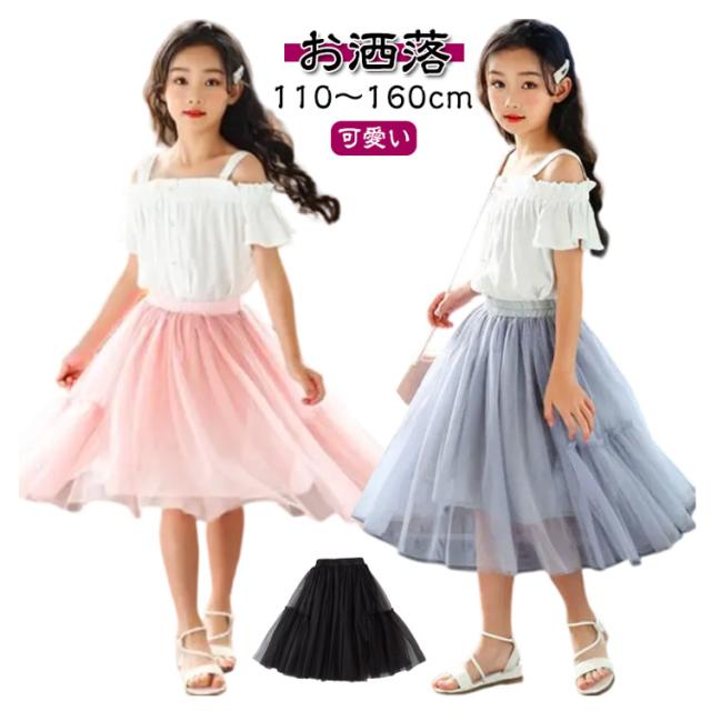 秋 キッズ Aライン 春 チュール かわいい 可愛い ジュニア お洒落 シンプル ふわふわ オールシーズン 子供 スカート ガールズ 無地 コーデ 120 チュールスカート こども服 子ども服 110 チュール 夏 130 140 150 160cm 発表会