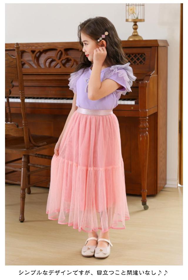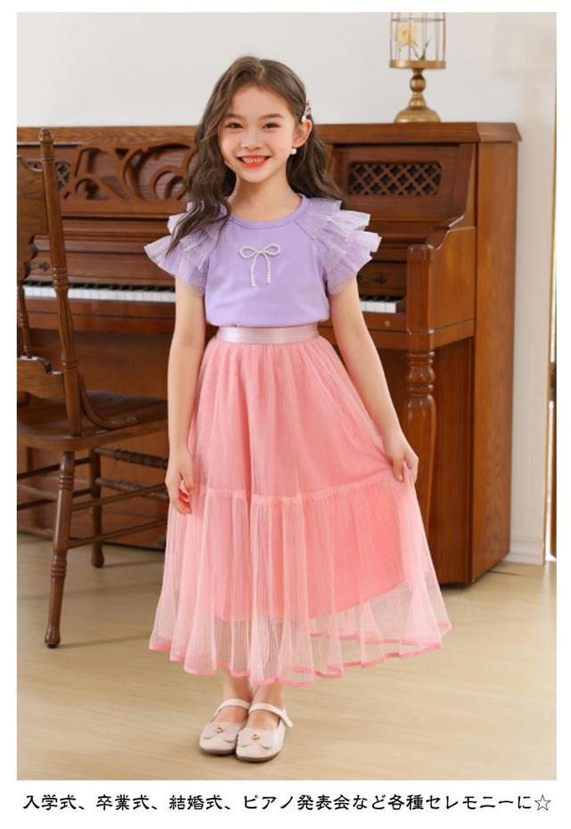 | 【110〜160cm】 入学式、卒業式、結婚式、ピアノ発表会など各種セレモニーに☆ シンプルなデザインですが、目立つこと間違いなし♪♪ 可愛い!プレゼントとしても大変喜ばれています!! 透け感のある軽やかなチュール素材を使用、ウエストゴムが穿きやすいティアードスカート。 | |
