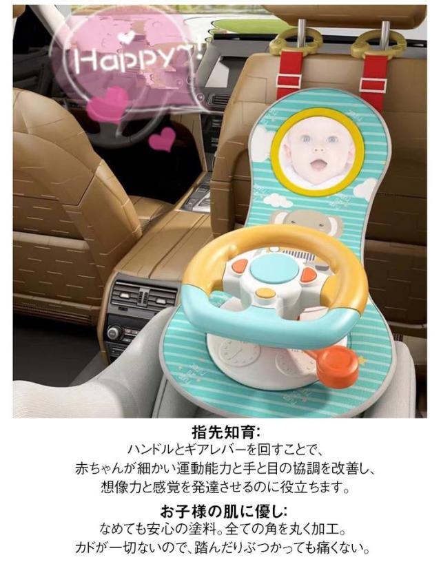 | 模擬運転:お子さまは、運転する大人の行動や姿勢を真似たり、大人と触れ合ったりすることで、運転の楽しさを体験できます。指先知育:ハンドルとギアレバーを回すことで、赤ちゃんが細かい運動能力と手と目の協調を改善し、想像力と感覚を発達させるのに役立ちます。 お子様の肌に優し:なめても安心の塗料。全ての角を丸く加工。カドが一切ないので、踏んだりぶつかっても痛くない。 おもちゃのデザインには多くの明るい色が使用されており、子供の色認識能力の向上に役立ちます。 チャイルドシート、ベビーカー、ベビーベッド、ベビーサークルなどに設置でき、赤ちゃんのサイズや使い勝手に合わせて調整もできます。 お誕生日、クリスマス、ハロウィンや-い、こどもの日のプレゼントやギフトにもピッタリです。 | |