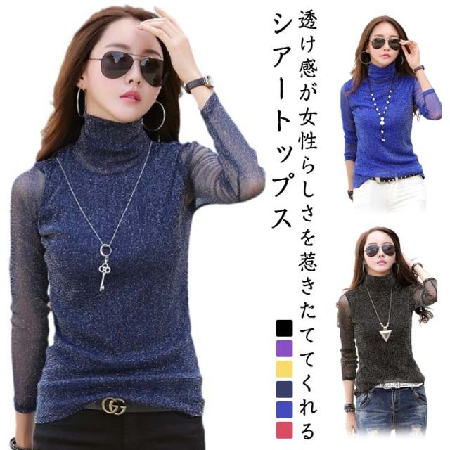 おしゃれ シンプル ハイネック レディース レイヤード 春秋 きれいめ 透け感 重ね着 おでかけ トップス カジュアル 大人 女性 無地 長袖 デイリー かわいい 大きいサイズ シアートップス スリム 着?せ