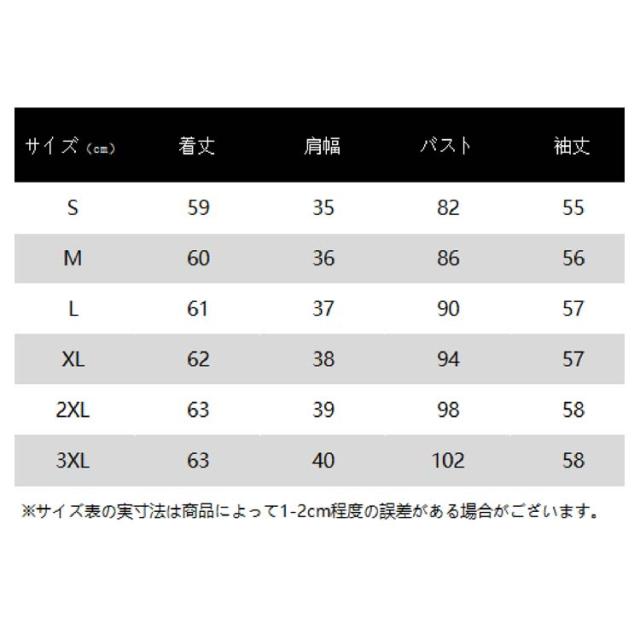 | サイズ | S M L XL 2XL 3XL |