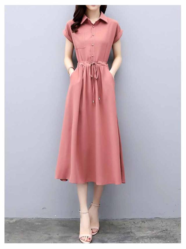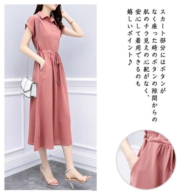 シャツワンピ 半袖 フォーマル シャツワンピース レディース きれいめ 半袖ワンピース 春夏 ロングワンピース シャツワンピース ロング aライン フレアワンピース 大人 女性 着?せ ウエストマーク 体型カバー きれいめ