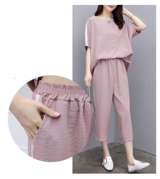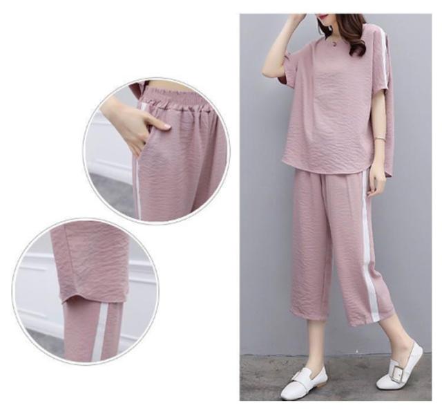 | 便利なtシャツ+7分丈パンツセット 優れた生地を採用しており、柔らかくて快適な着心地を実現。 室内外問わず活躍する便利な上下セットです。 締め付け感のない半袖トップスと七分丈のパンツセットなので、運動する際の強い味方に。 | |