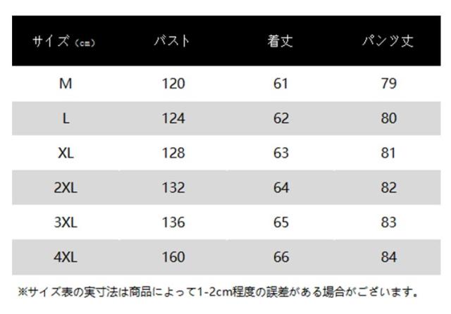 | サイズ | M L XL 2XL 3XL 4XL |
