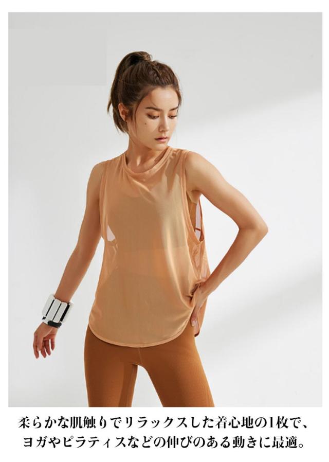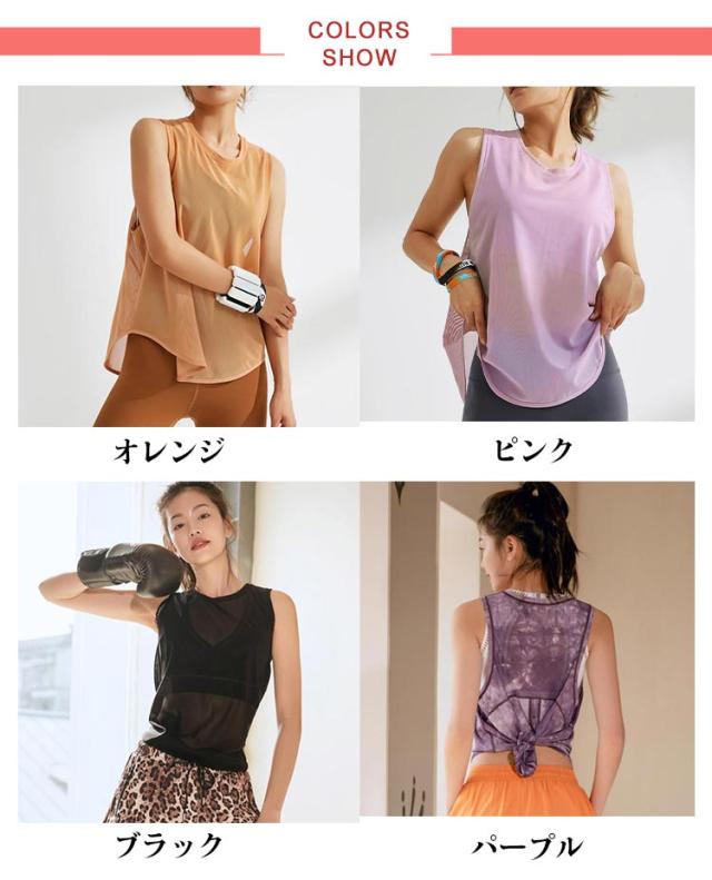 メッシュ トップス 無地 フィットネスウェア ヨガウェア タンクトップ おしゃれ トップス ズンバウェア タイダイ スポーツウェア 吸汗速乾 チュニック ヨガ ダンス ピラティス ダイエット レディース ヨガウェア tシャツ 袖なし 薄手