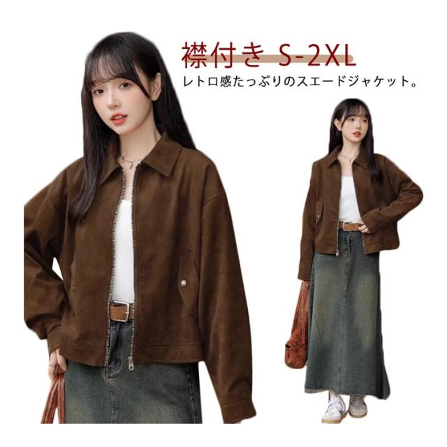 ブルゾン ブルゾン スエード ライトコート ドロップショルダー レディース メンズライク コーチジャケット 襟付き ショート丈 お洒落 マウンテンパーカー アウター 春秋 オーバーサイズ ジャケット 体型カバー ストリート系