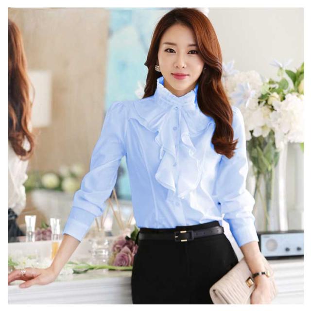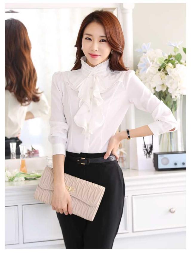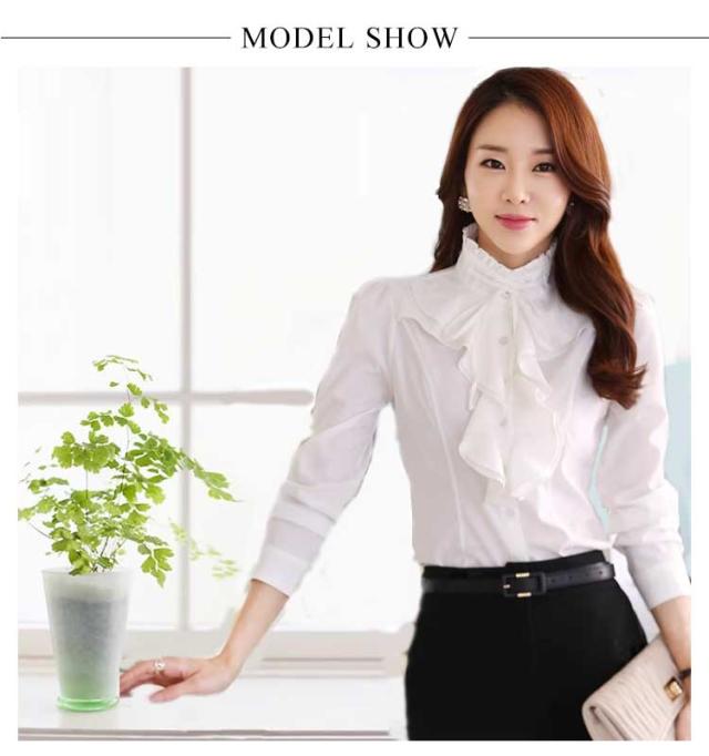| ゴージャスで大人きれいめブラウス。 フリルたっぷりのスタンドカラーとフロントフレアが華やかなブラウス。 着るだけでエレガントなブラウス、1枚で着ても、ジャケットと合わせても素敵な長袖ブラウス。 ビジネスやオフィスカジュアルスタイルはもちろん、入園式、入学式、卒園式、卒業式、結婚式、発表会などフォーマルシーンも大活躍。 | |