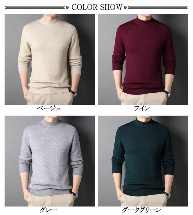 | 7colors×6size 一着は持っておきたいアイテム 厚みがしっかりとあり、上品な印象のモックネックニット ビジネスから大人カジュアルまで幅広く着まわせるのが魅力! 程よい厚みで1枚で着てもインナーとしても使い勝手がよい | |