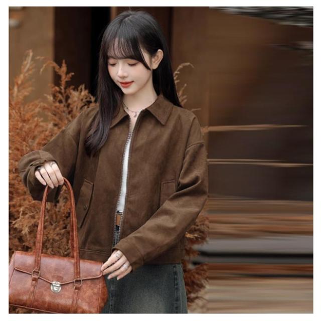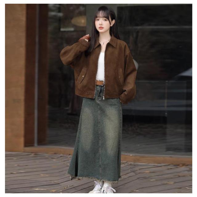 | レトロ感たっぷりのスエードジャケット。 トレンドのビッグシルエット、さっと羽織るだけでこなれ感のあるスタイリングに。 デニム合わせはもちろん、ワンピースやフレアスカートと合わせても可愛い。 | |