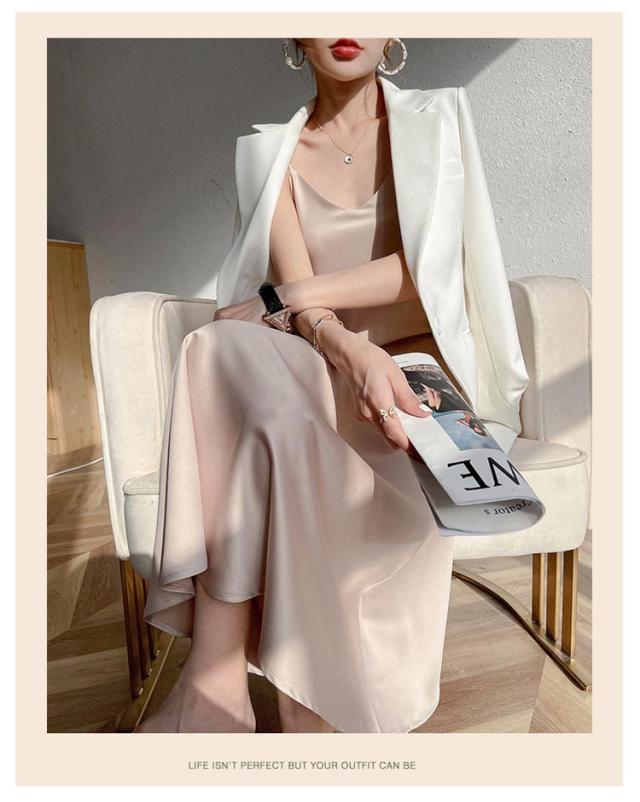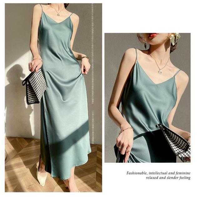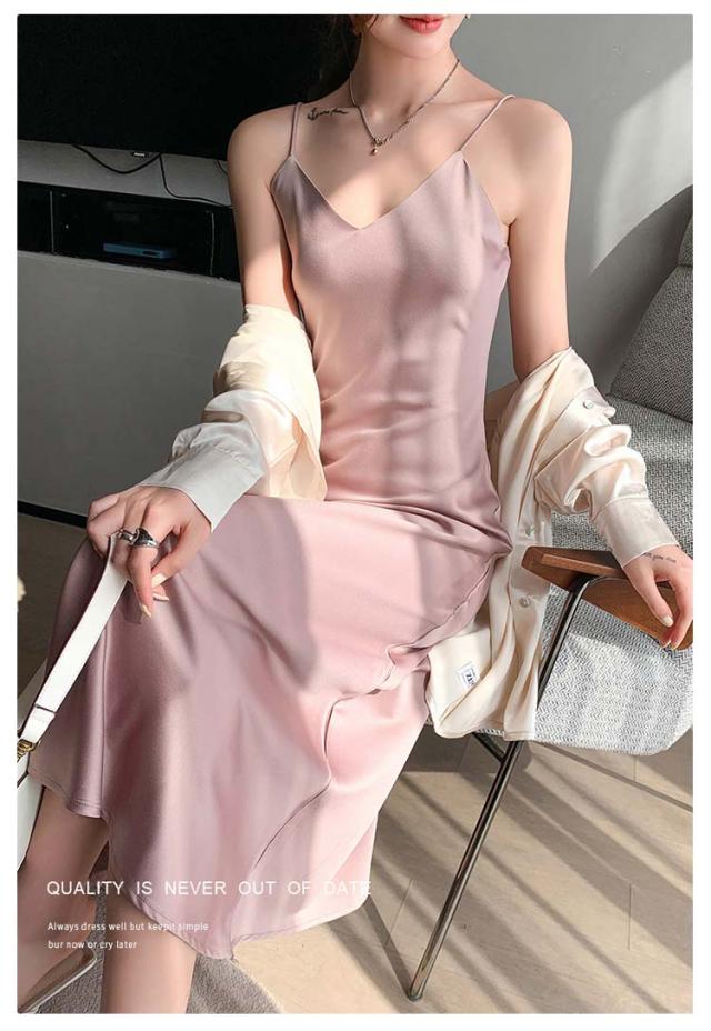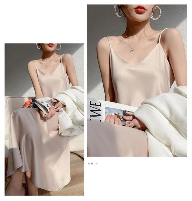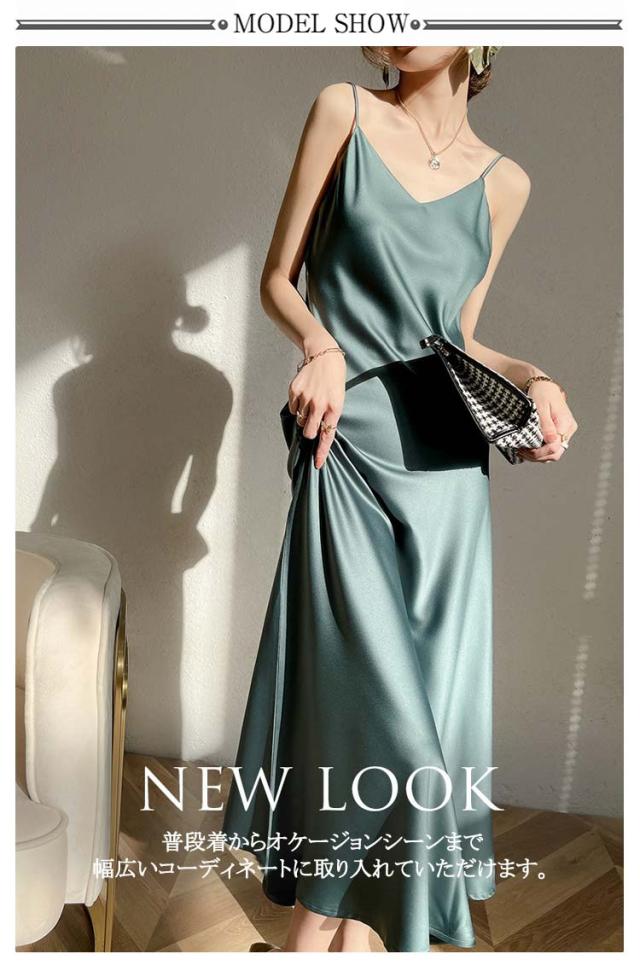 ノースリーブ レディース 重ね着 シンプル ロングワンピース キャミワンピース サテン キャミソールワンピース aライン ミモレ丈 レイヤード フォーマル フェミニン インナー フレア キャミソール 上品 きれいめ 夏 美脚 着痩せ キャミワンピース 50代 40代