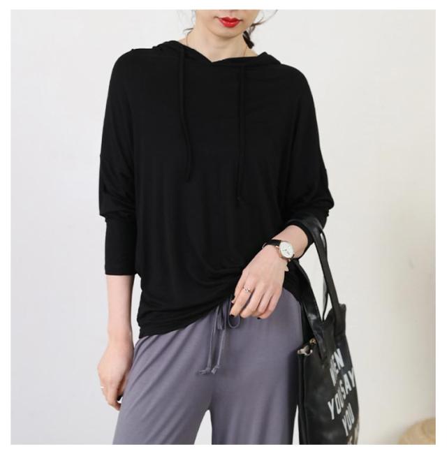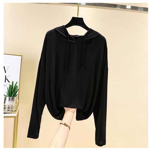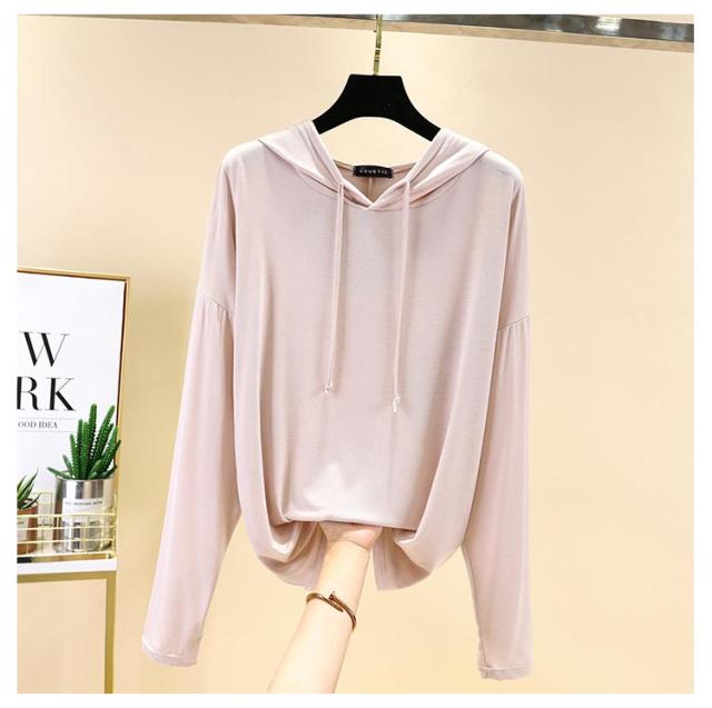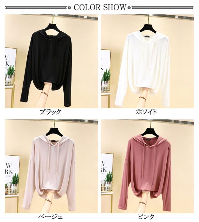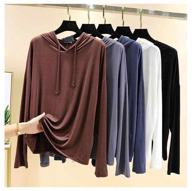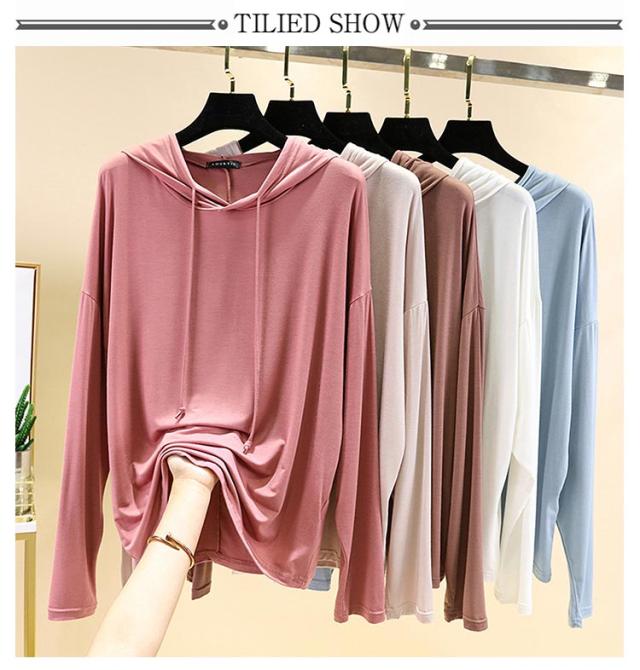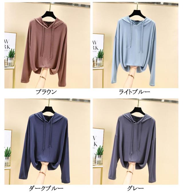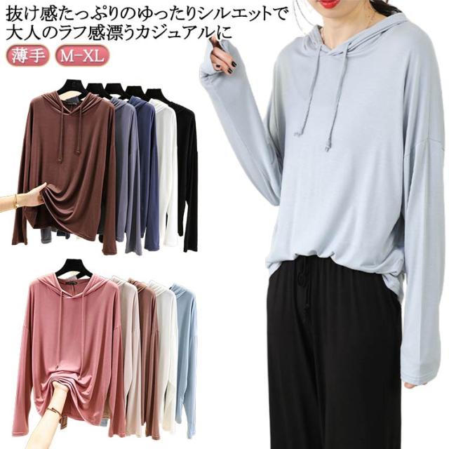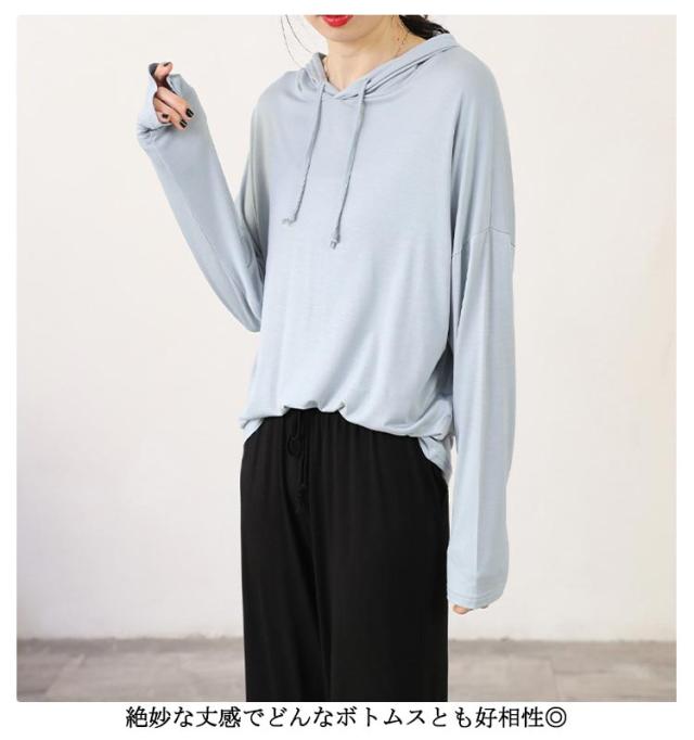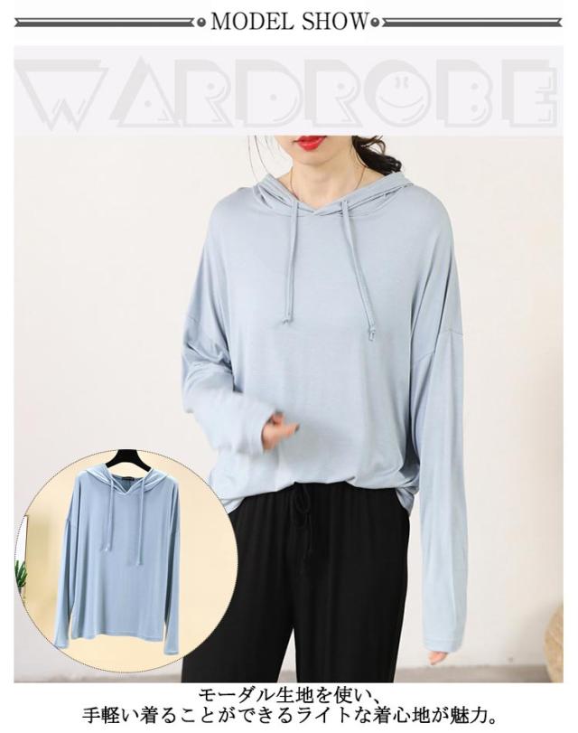 パーカー フード付きtシャツ モーダル素材 夏服 レディース トップス 日焼け防止 フード付きtシャツ ライトスウェット プルパーカー 長袖Tシャツ プルオーバー フード付き スウェットパーカー 送料無料 シンプル 無地 薄手 春夏秋 無地