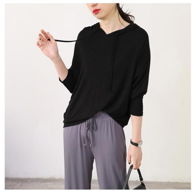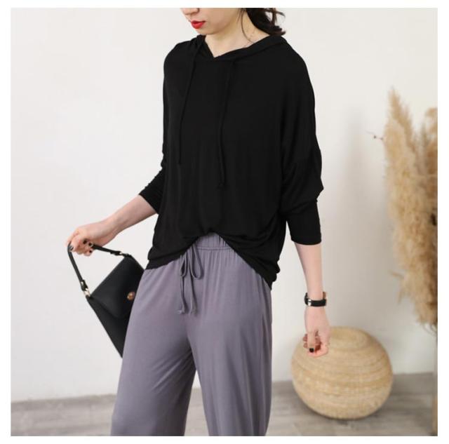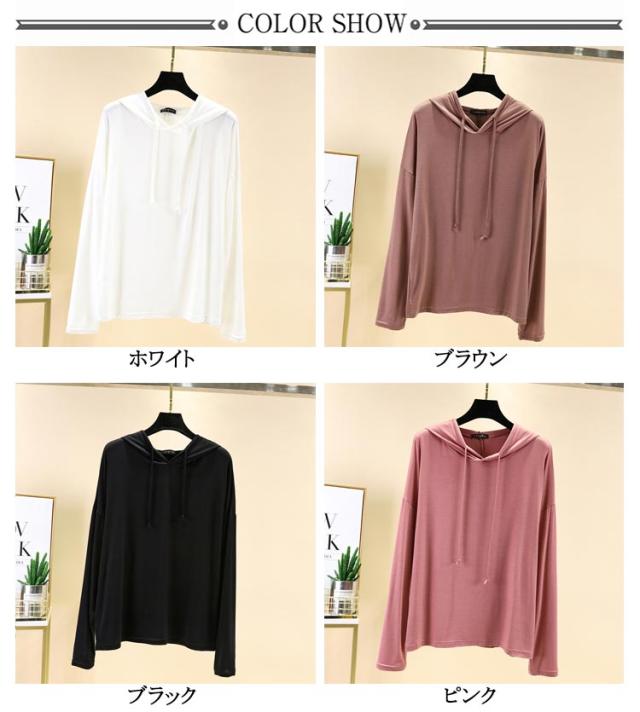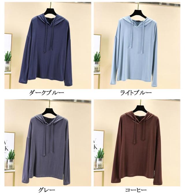 カジュアル レディース Tシャツ 長袖 フード付き ゆったり フード付きTシャツ 春秋 モダール 柔らかい 長袖Tシャツ 女性着 薄手 カットソー 春秋 着痩せ レディース トップス フード付きTシャツ トップス 大人の可愛い おしゃれ 体型カバー 無地 黒 ホワイト