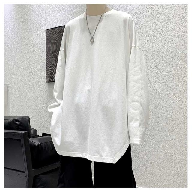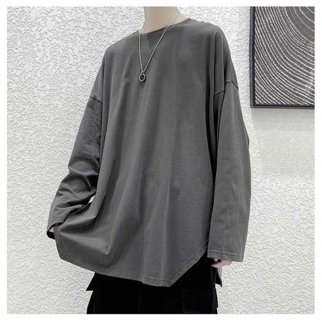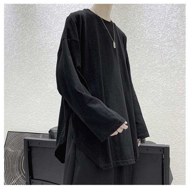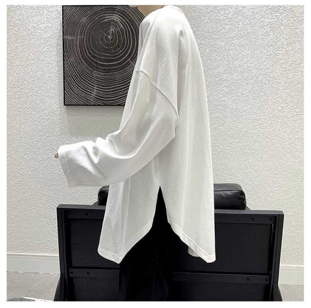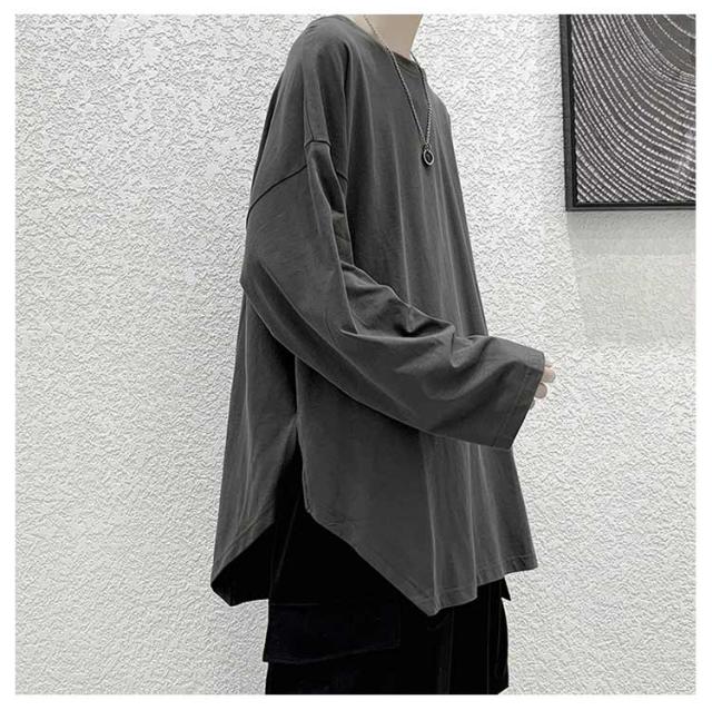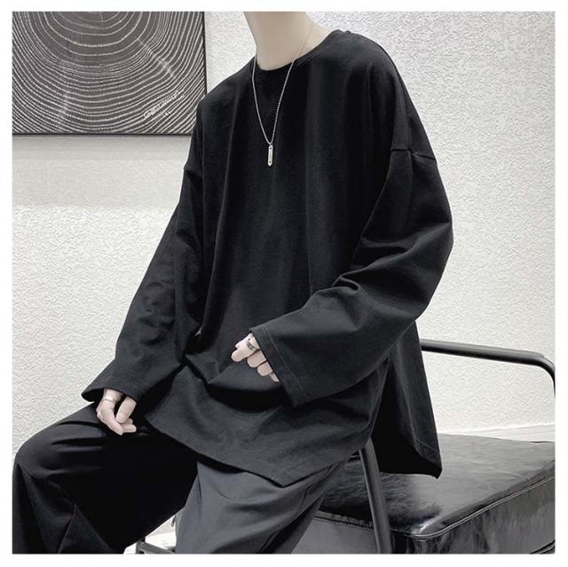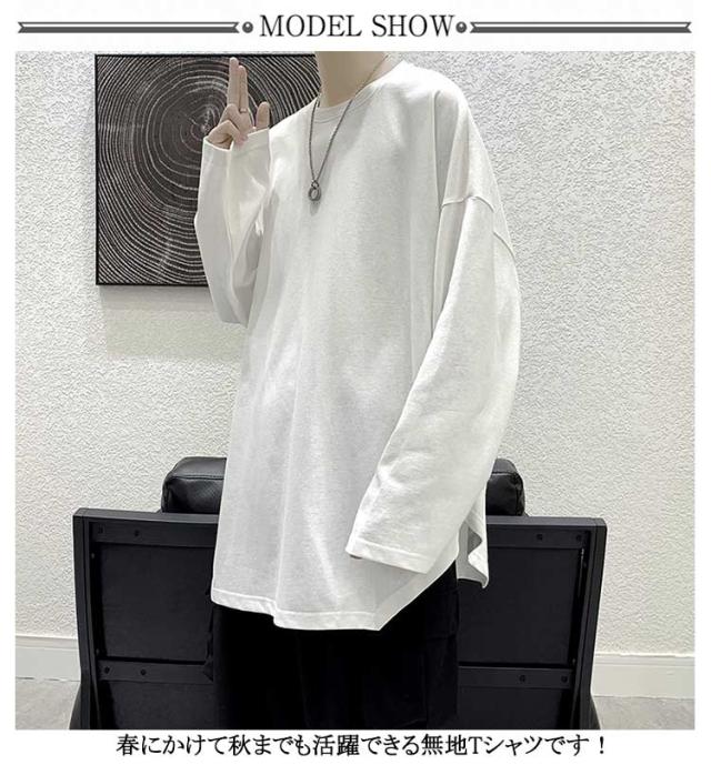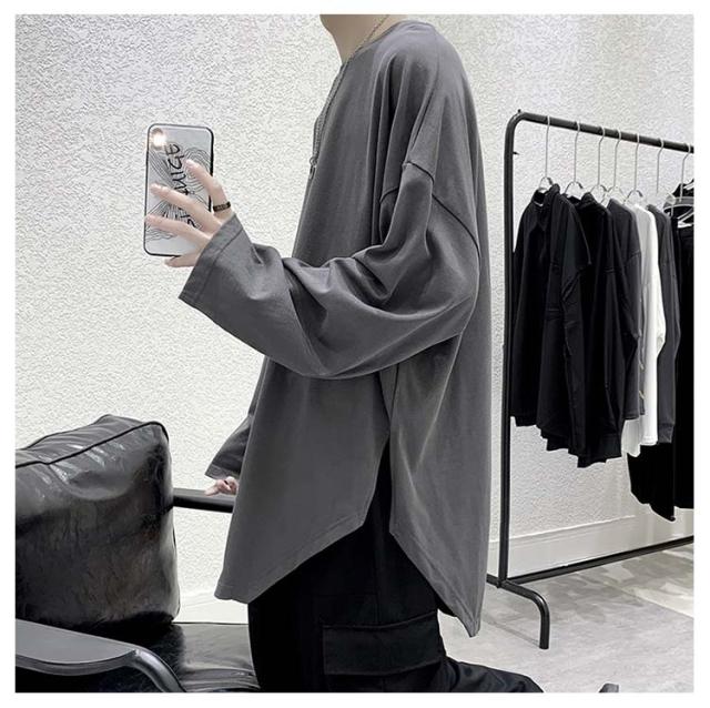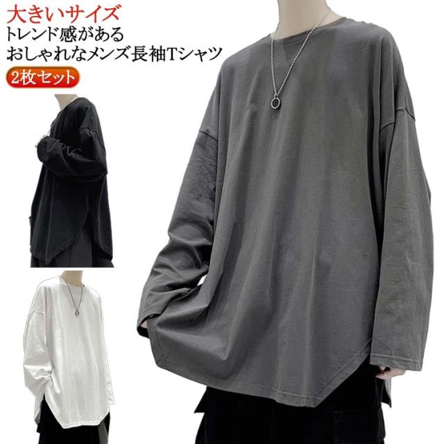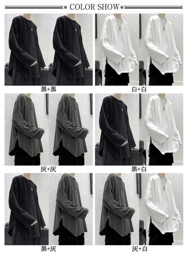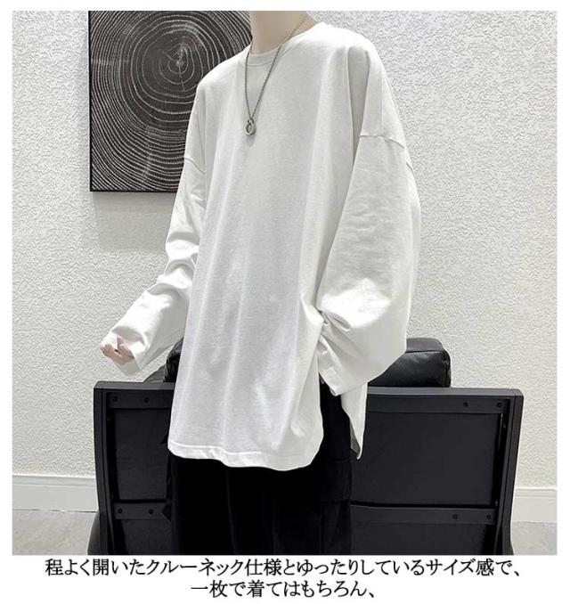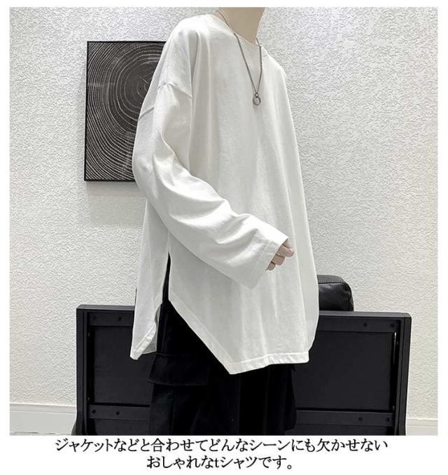 メンズ 無地 春秋冬 オーバーサイズ カットソー ビッグシルエット 長袖 サイドスリット 長袖 大きいサイズ インナーシャツ tシャツ カジュアル おしゃれ クルーネック プルオーバー 体型カバー ロンT