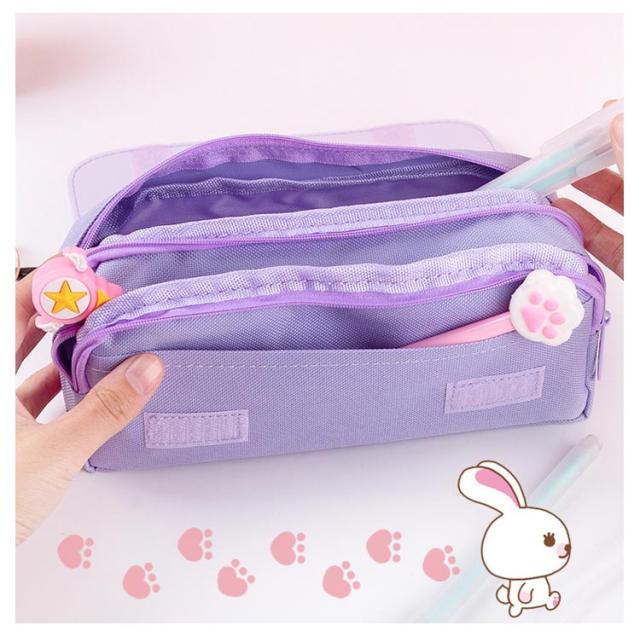 ペンケース 大容量 可愛い 筆箱 送料無料 ペンポーチ 筆入れ 収納 ポーチ マルチケース ケース 送料無料 高校生 ペン入れ 小学生 文房具 動物 猫 兎 くま おしゃれ 文具 持ち運び プレゼント 筆記用具 誕生日 入学祝い パープル ピンク ブルー 女の子