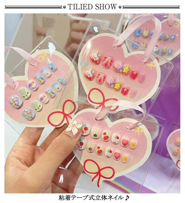 | 12枚入り粘着テープ式 粘着テープ式立体ネイル♪ お洒落キッズが大好きなネイル♪ 貼るだけでネイルが完成! | |