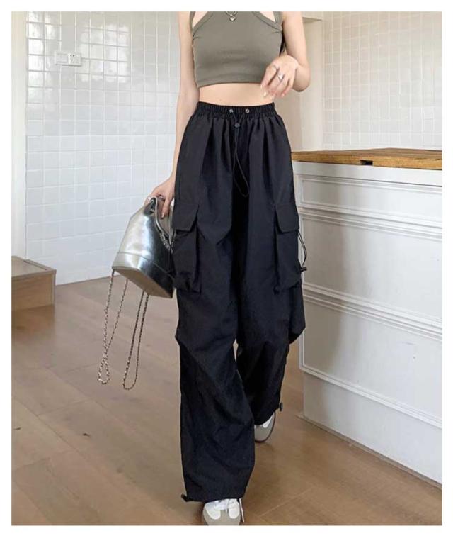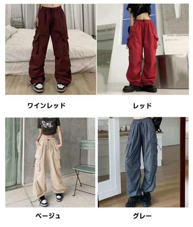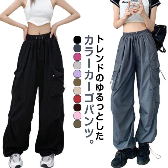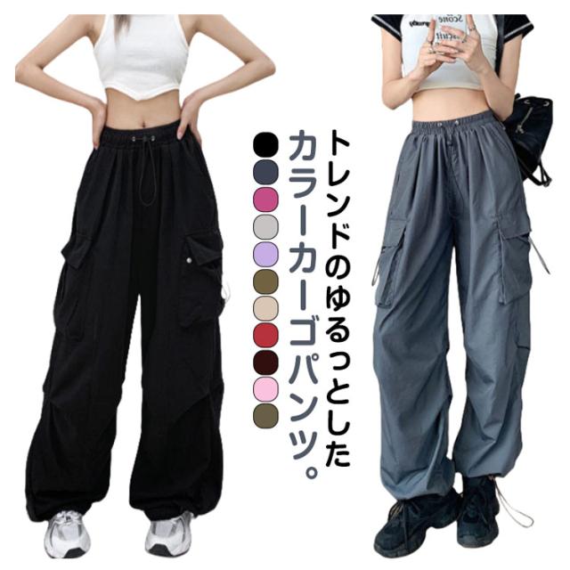 レディース ワイドパンツ 夏 ダンスパンツ ワークパンツ 無地 夏 ウエストゴム カラーパンツ カーゴパンツ ワークパンツ 秋 ロング 裾ドロスト 春 2way ゆったり ボトムス レディース おしゃれ ミリタリー ストリート 大きいサイズ イージーパンツ S-5XL