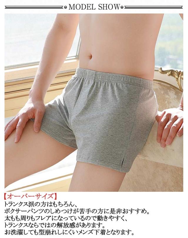 | 【3枚セット】 【厳選生地】 やわらかな伸縮性に優れたニット生地のトランクスで、肌ざわりが滑らかです。95%綿を採用し、通気性&吸汗性&速乾性にも抜群、異臭なし&色褪せにくいなどのポイントもあります。 【オーバーサイズ】 トランクス派の方はもちろん、ボクサーパンツのしめつけが苦手の方に是非おすすめ。太もも周りもフレアになっているので動きやすく、トランクスならではの解放感があります。お洗濯しても型崩れしにくいメンズ下着となります。 【デザイン】 幅広いウエストゴムの裏側も綿で包まれ、肌に優しい!適度なウエスト幅で着心地が良く、スマートなシルエットにこだわったデザインと高い耐久性が特徴です。ゆとりある適度の脇丈でゆったりと着用いただけます。 | |