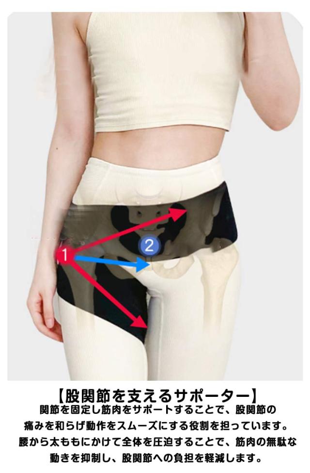 | 股関節サポーター。 【股関節を支えるサポーター】関節を固定し筋肉をサポートすることで、股関節の痛みを和らげ動作をスムーズにする役割を担っています。腰から太ももにかけて全体を圧迫することで、筋肉の無駄な動きを抑制し、股関節への負担を軽減します。 【着け心地抜群】踏ん張る力をサポートしつつも、伸縮性に優れているので、軽快な動きも妨げません。 【通気性に優れた】薄手の生地で蒸れにくく、肌に優しい設計になっています。 【サイズ調整も簡単】マジックテープで固定でき、腰・太もものサイズに合わせて簡単に調整が可能です。 【あらゆるシーンに利用】日常生活はもちろん、筋トレやスポーツの時に着用することで、股関節の痛みの予防にも繋がります。 【手洗い可能】水またはぬるま湯での手洗いが可能なので、手軽に洗濯できて、衛生面も安心です。 | |