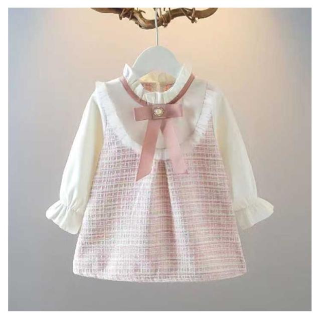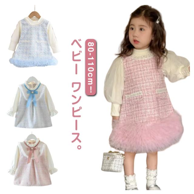 ワンピース 入園式 卒園式 ベビー 幼児 チェック柄 春 女の子 重ね着 秋 膝丈 長袖 かわいい ベビー リポン キッズ 通園 丸首 子ども 七五三 子供服 入学式 ブルー 赤ちゃん 結婚式 ピンク レイヤード風 ベビー服 通学 レイヤード 80 90 100