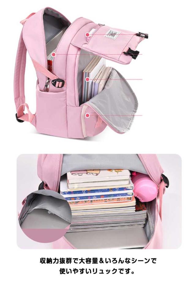 | おしゃれでかわいい大容量なリュックサック。大容量キッズリュック。 収納力抜群で大容量&いろんなシーンで使いやすいリュックです。 防水性に優れた素材なので、撥水性、防汚効果が良く、また耐摩擦性に強くなっています。 クッション材を使用する事で、痛くなりにくいです。 リュックはポケットが多いので、様々な物の収納に便利です。 様々なシーンで大活躍!通塾、通学などのデイリーユースに入学準備、普段使い、社会見学、旅行、レジャー、遠足、修学旅行、プレゼントとしても大変喜ばれています。 | |
