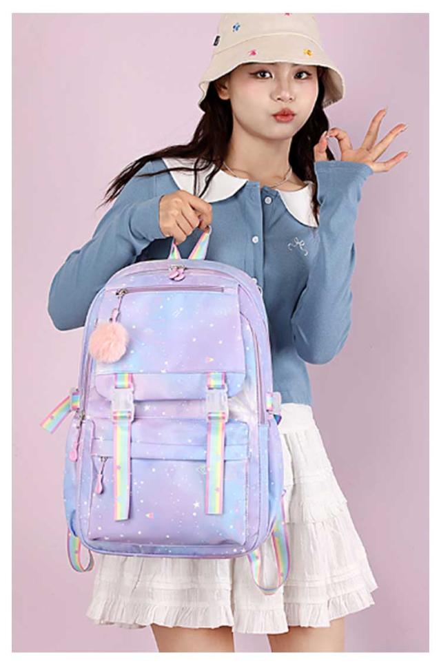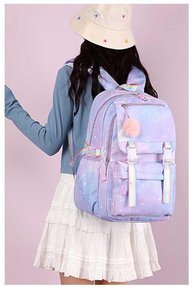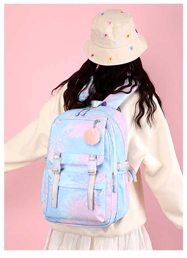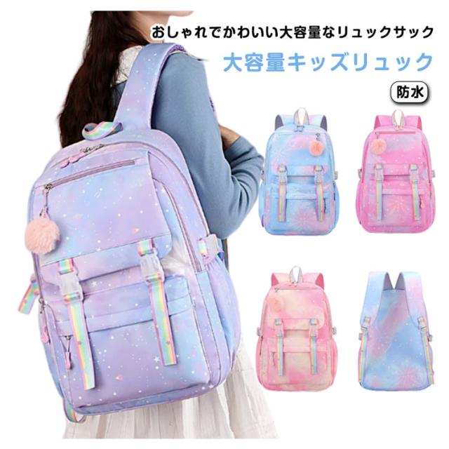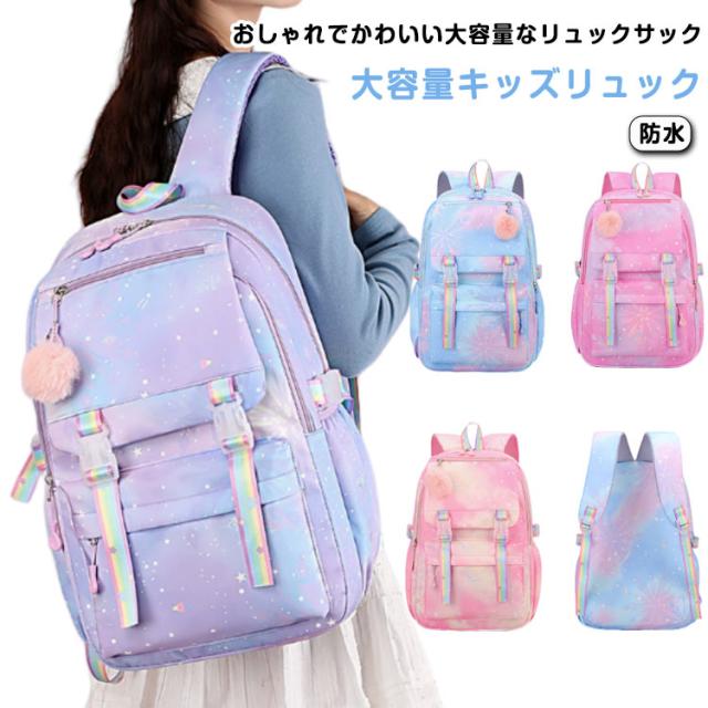大容量 バックパック 低学年 女の子 キッズ A4対応 ジュニア 軽量 アウトドア リュックサック 遠足 チャーム 防水 可愛い おしゃれ 教科書 高学年 旅行 子供 小学生 送料無料 通学 自転車 入学祝い 送料無料 中学生 グラデーション