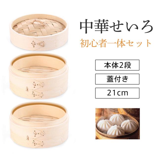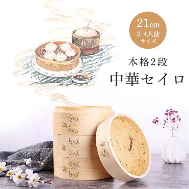 せいろ せいろ蒸し器 中華せいろ 蒸籠 二段 21cm セット 蓋 本体 家庭用 竹製 点心 肉まん 小籠包 シュウマイ 蒸し料理