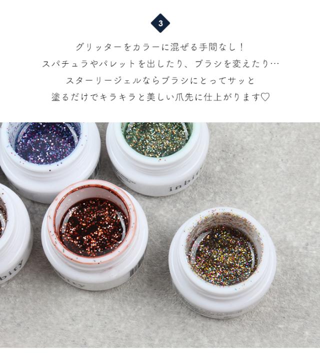 メール便 inbity スターリージェル StarryGel グリッター カラージェル グリッタージェル ジェルネイル ネイル カラー ジェル セルフネイル プチプラ ネイルアート ネイルアート セルフジェルネイル 卒業式 入学式 春ネイル