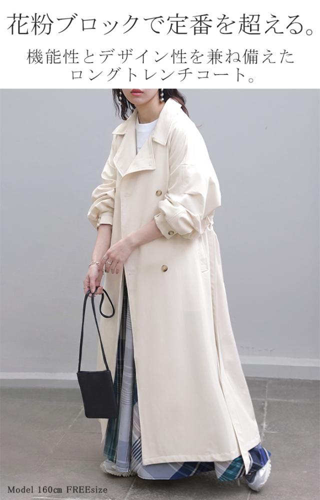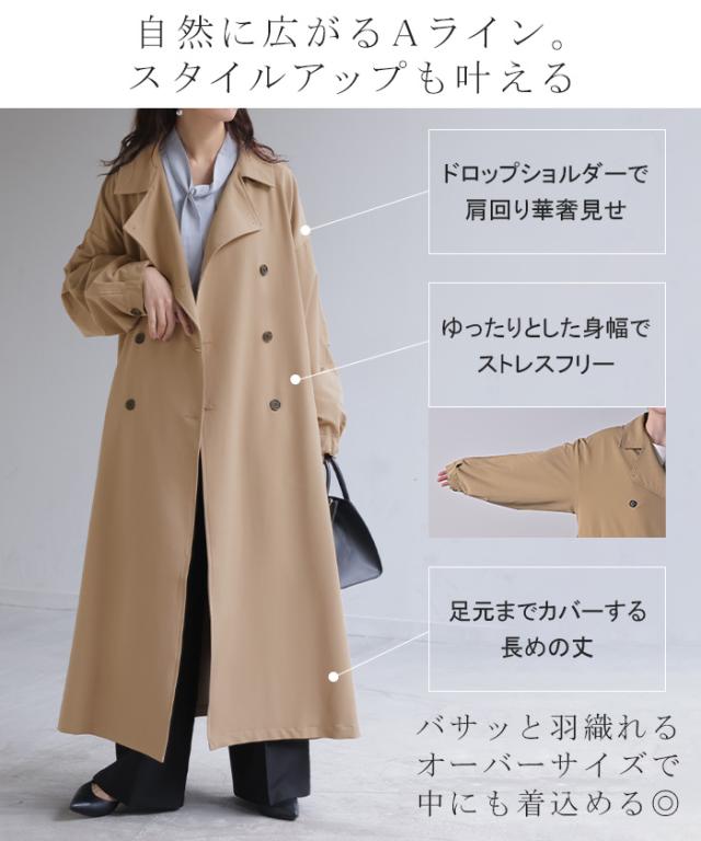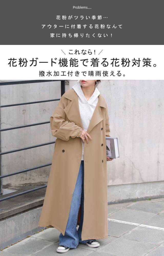 コート 花粉 対策 撥水 レディース 一部4月上旬入荷 アウター トレンチコート ロング ロングコート ジャケット 羽織 ゆったり きれいめ 花粉がつきにくい オーバーサイズ 大きいサイズ 体型カバー スプリングコート お尻が隠れる 雨 通勤 黒 ベージュ 春 夏 HUG.U 秋新作