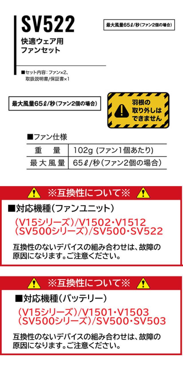 HOOH 快適ウェア用ファンセット(ファン2個) SV522 村上被服 2025年型