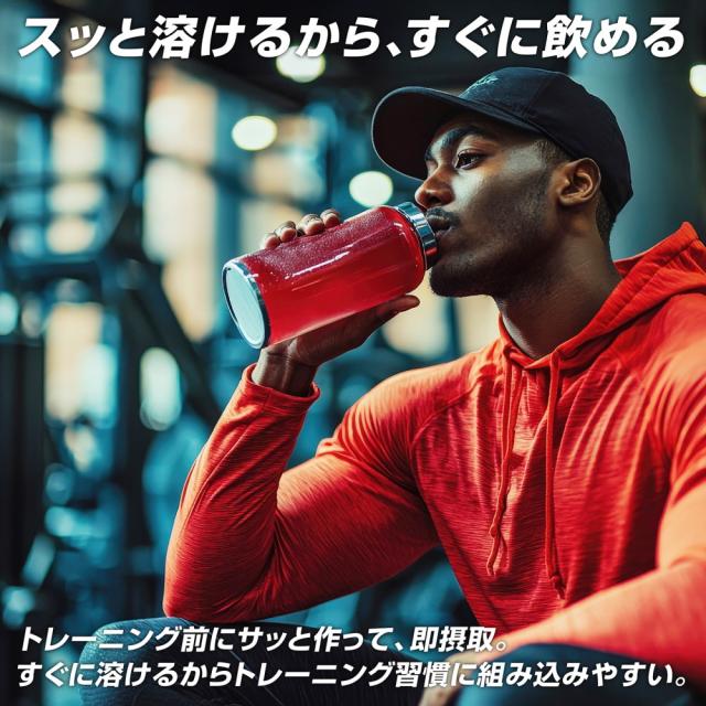 トレーニング前にサッと作れて、即摂取できます。すぐに溶けるのでトレーニング習慣に組み込みやすいです。
