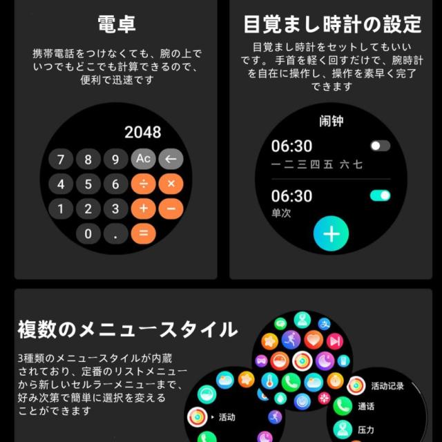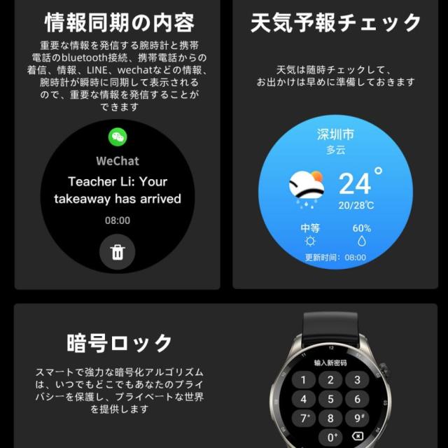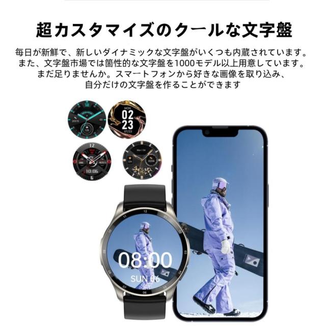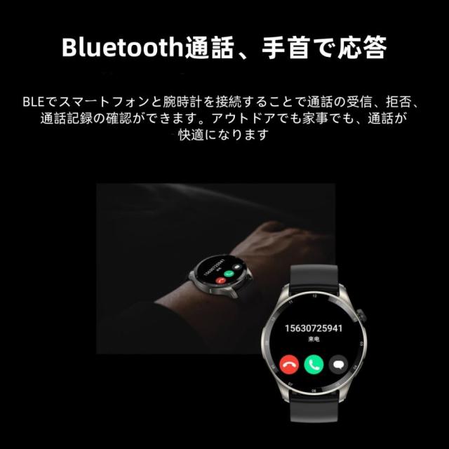 【通話機能?着信通知】ペアリング設定を済まして、連携した携帯電話に届いた着信やメール、LINE、Skype、Facebook(Meta)、Twitter(X)、Instagram、SNSの受信などの通知をスマートウォッチに同期できます。着信やメッセージを見逃す心配はいりません。スピーカーとマイクを内蔵し、携帯電話を出さなくても、通話することができます。
