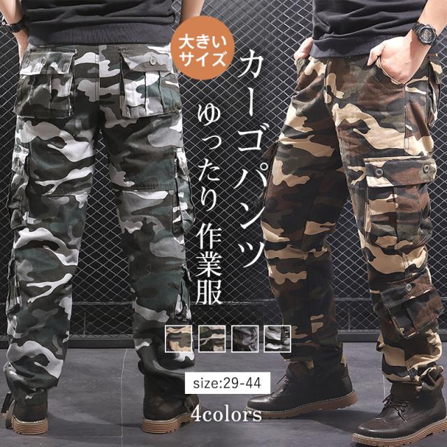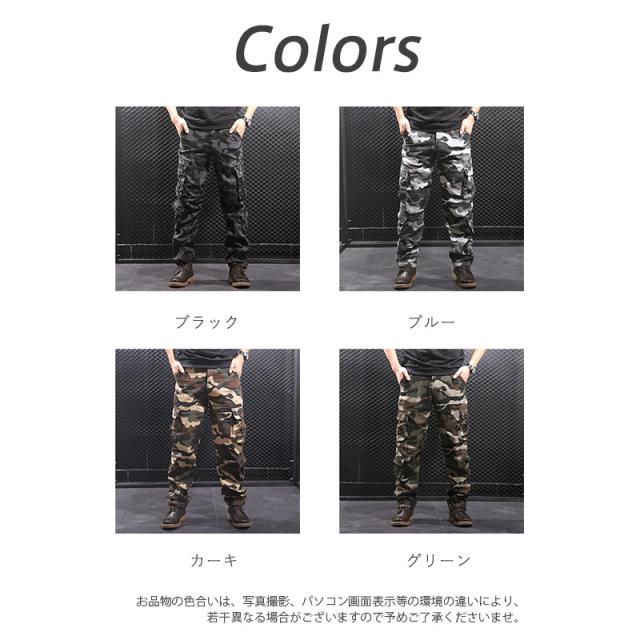カーゴパンツ メンズ ミリタリーパンツ 迷彩柄 コットン ワークパンツ ストレート 作業着 カラーパンツ 軍パン カジュアル 大き