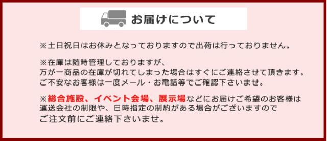 ※総合施設・イベント会場・展示場などにお届けをご希望のお客様は、運送会社の制限や、日時指定の制約がある場合がございます。