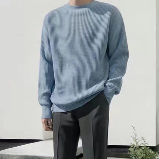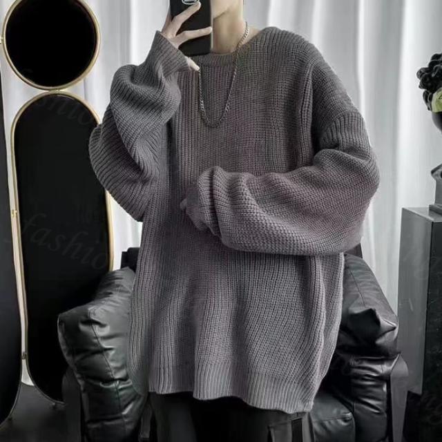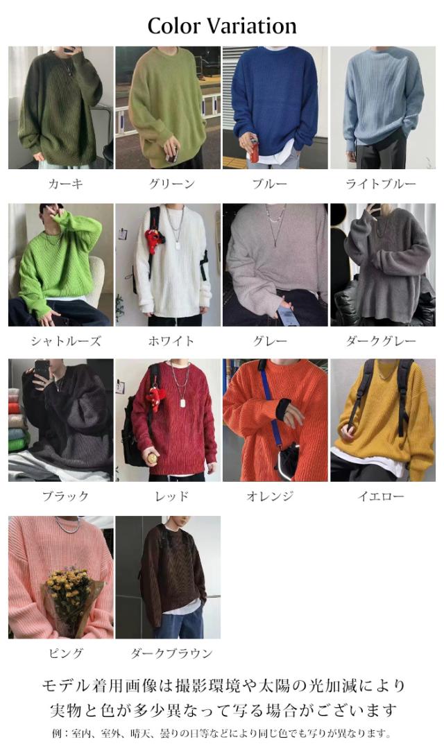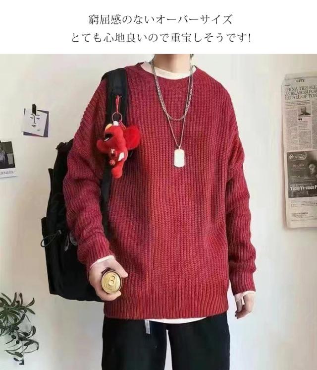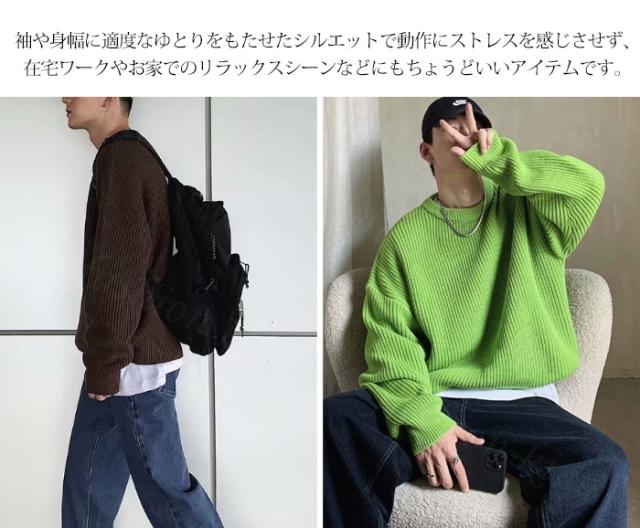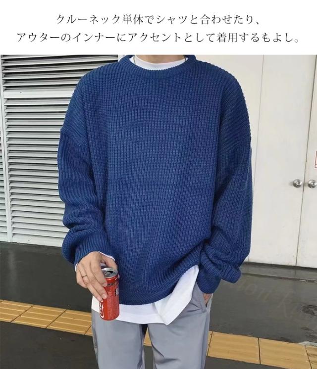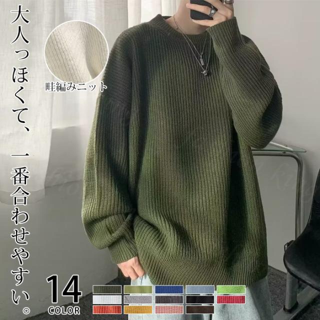 <1点2,130円!クーポン利用で>ニット メンズ セーター 秋冬 秋新作 編み 畦編み 長袖ニットソー クルーネックニット 防寒 暖かい トップス 無地 シンプル アクリル アクリルニット クルーネック 長袖ニット