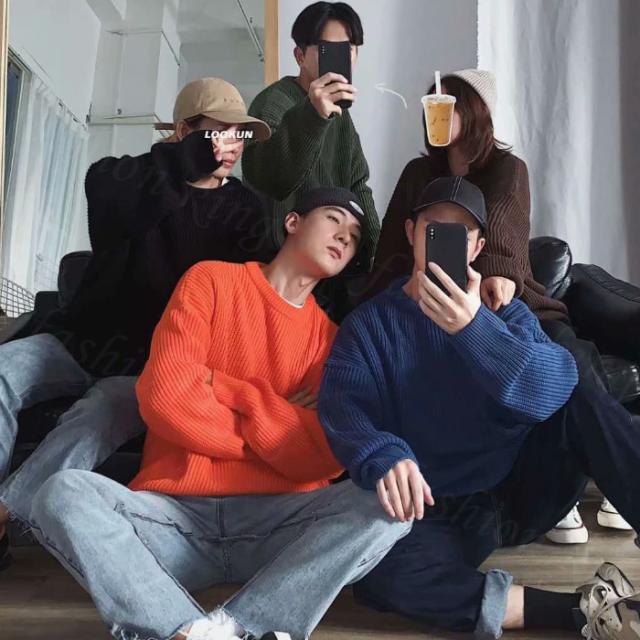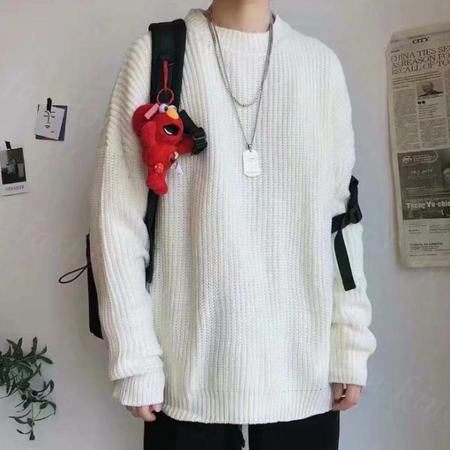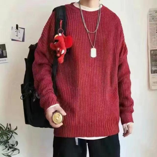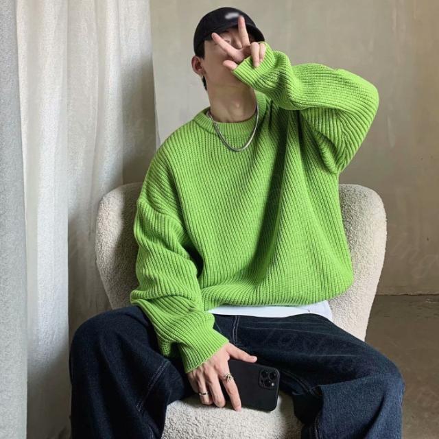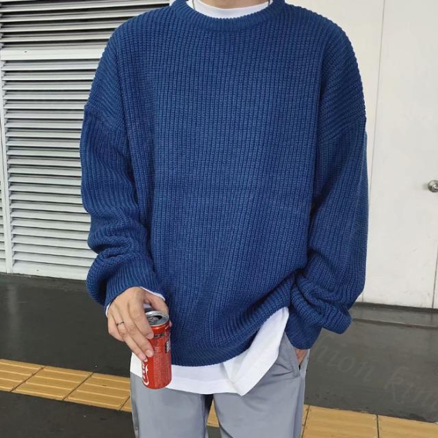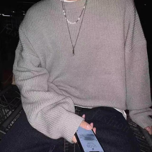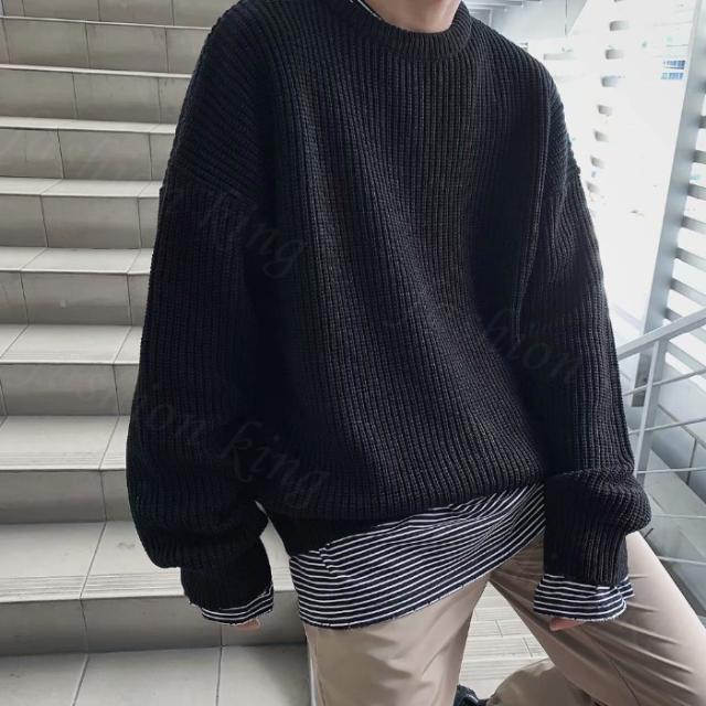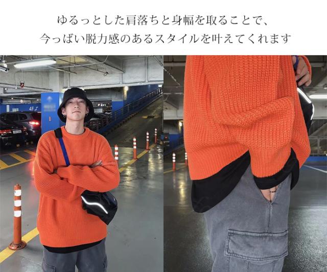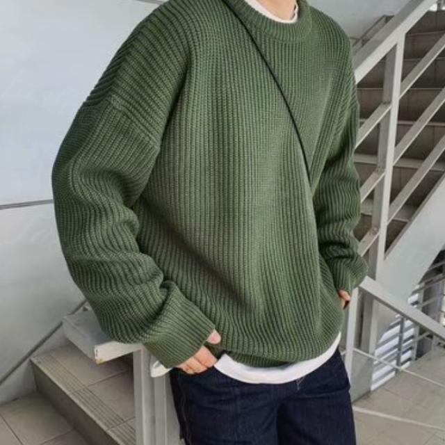 <1点2,130円!クーポン利用で>ニット メンズ セーター 秋冬 秋新作 編み 畦編み 長袖ニットソー クルーネックニット 防寒 暖かい トップス 無地 シンプル アクリル アクリルニット クルーネック 長袖ニット