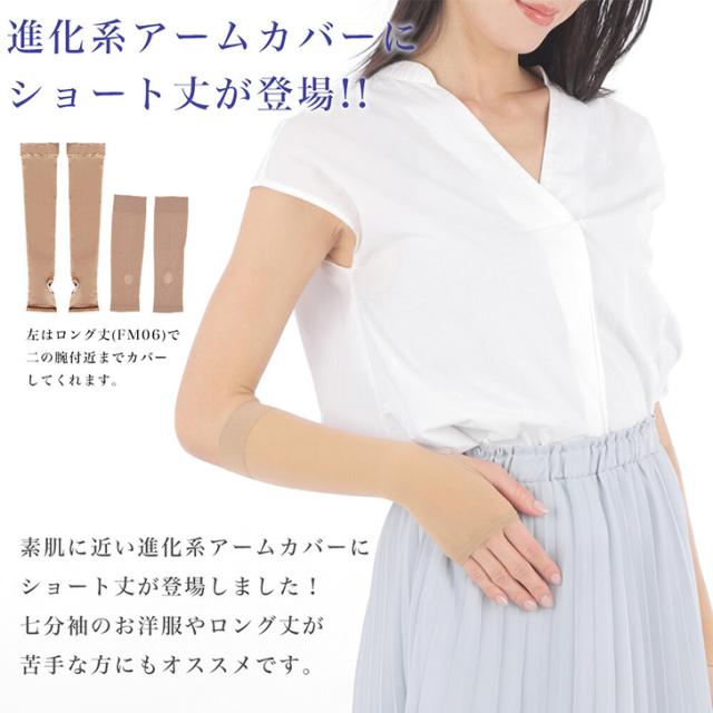 新作 アームカバー UVカット 接触冷感 肌色 ベージュ 素肌感覚 ショート丈 短め ひんやり 涼しい 指穴 指なし 肌隠し 日本製 通勤 運転