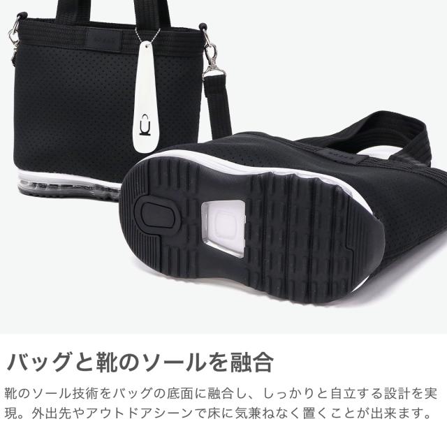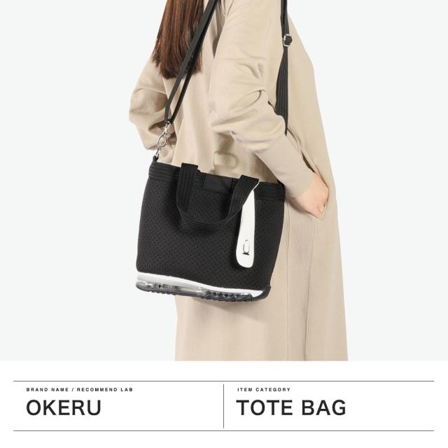 「バッグが靴を、履いたなら。」"OKERU=置ける"をコンセプトに、バッグと靴のソールを合体させた「シューズバッグ」という新しいプロダクトをデザインする『OKERU』の2WAYトートバッグ。伸縮性のある丈夫なポリエステル素材と、スポーティーなエアーソールを用いた代表モデル。気兼ねなく床や地面に置ける使いやすさと、周囲を驚かせる遊び心の詰まったユニークなデザインが魅力です。
