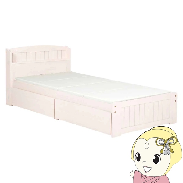 すのこベッド マットレス付シングルベッド MB-5039S1180 薄型マットレス 木製 宮棚付き ベット 天然木 引き出し コンセント付 ホワイトウォッシュ