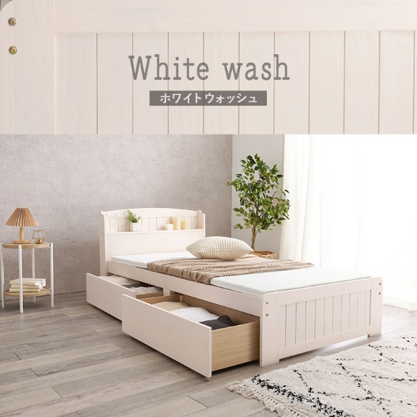 大容量引出し収納付きの天然木すのこベッド。 収納や持ち運びに便利な四つ折りタイプの固綿マットレスセット。 ■カラー ホワイトウォッシュ ■サイズ(約) ベッド:(約)幅101×奥行210×高さ78×座面高34cm、マットレス:(約)幅91×奥行195×高さ4cm ■素材 主材:天然木(パイン材) ■備考 ・2口コンセント付 ・固綿マットレス ■組立 お客様組立品 ■生産地 ベッド:ベトナム製、マットレス:日本製 ※お客様組立て品につきましては、組み立て後に不良の連絡をされても対応ができません。組み立て前にパーツに不良・傷等がないか、必ずご確認下さいますようよろしくお願い申し上げます。 ※記載は商品仕様の一部です。仕様説明不足等の理由での返品はできません。特に適合等は必ずご確認ください。