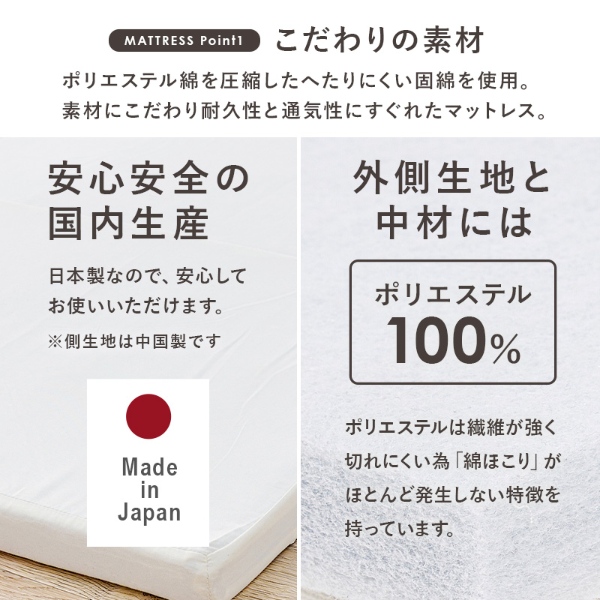 収納や持ち運びに便利な四つ折りタイプの固綿マットレスセット。