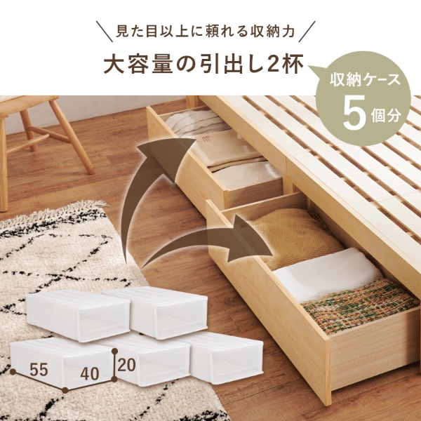 ・引出しは大容量で収納ケース何個分もの収納が可能でまるでチェストベッド。